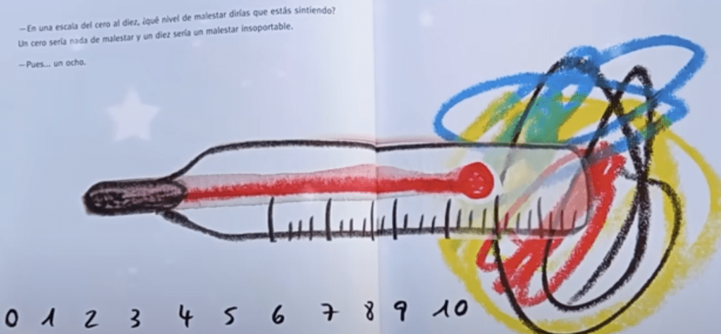 De inmediato, sin siquiera indagar en qué fue aquello a lo que dijo que sí cuando quería decir no, el doctor empieza a medir las emociones con cuestionamientos como: ¿dónde tienes esa sensación? Luego le pregunta, como si la respuesta no fuera obvia, si la sensación es agradable o desagradable. Posteriormente, le pide que en una escala del 1 al 10 mida su malestar. Seguido de esto, le muestra caras que van de la más feliz a la más triste para que señale con cuál se identifica. Luego, sin más, le muestra el botiquín de regulación emocional lleno de estrategias para sentirse bien. Y después… ¡más y más estrategias!