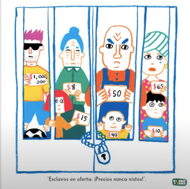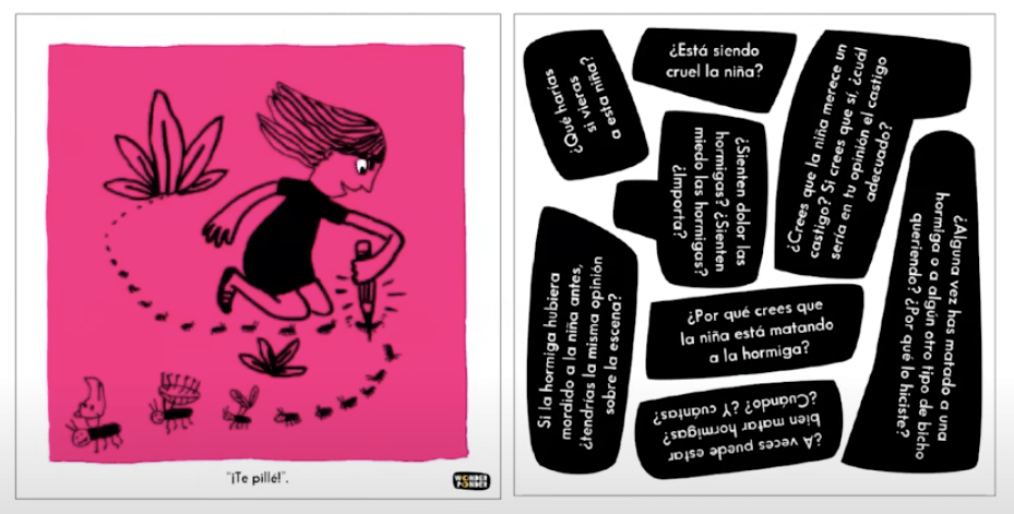 Detrás de las imágenes hay una serie de preguntas guía como en este ejemplo de Mundo cruel.