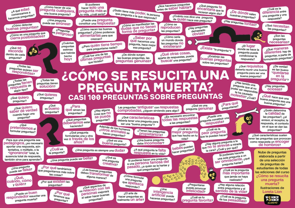 Todo el proyecto, sin duda alguna, destaca por su originalidad. En la conferencia ¿Cómo preguntar para que te pregunten? Ellen Duthie describe las buenas preguntas como impertinentes, aquellas que nos sacuden e incomodan, «que pican». Resalta que hay preguntas que nacen muertas pues «se agotan en sí mismas, cierran más de lo que abren».