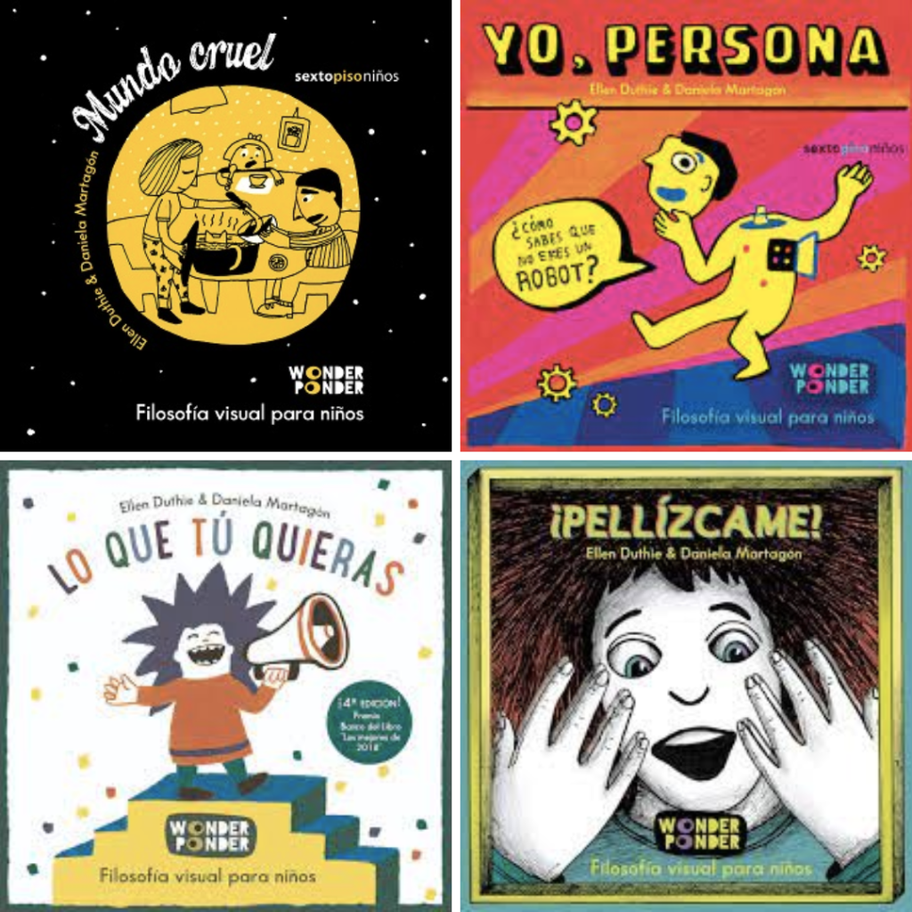 Wonder Ponder es un proyecto editorial creado por Ellen Duthie, Raquel Martínez Uña y Daniela Martagón cuyo lema es «Mira. Juega. Piensa.» Dentro de su catálogo tiene una serie de filosofía visual de la cual hablo en este artículo. Esta se compone de cuatro volúmenes que se presentan en dos formatos: cajas con tarjetas separadas o libros que pueden leerse en cualquier orden: